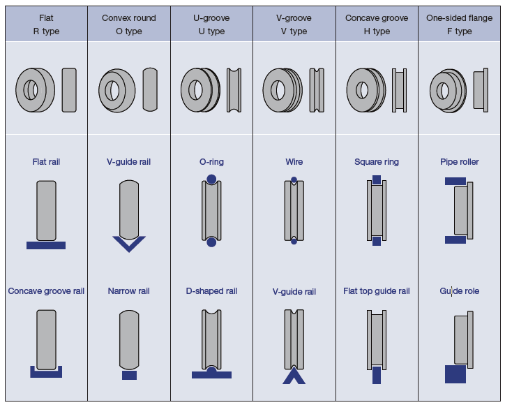 | V-groove type | Ideal for use when running a wire along the bearing groove or using on V-guide rails. |