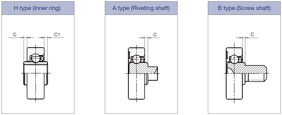 The method of installing a bearing varies greatly depending on the shape of the inner race. TOK bearings offer 3 different inner race shapes, each corresponding to a different installation method. While the inner ring type is generally the most common, TOK also provides screw shaft types and riveting shaft types. In particular, the screw shaft type allows for easy installation using a Phillips screwdriver. Each inner race shape is explained in detail, along with videos, so please refer to them and select the inner race most suitable for your application.