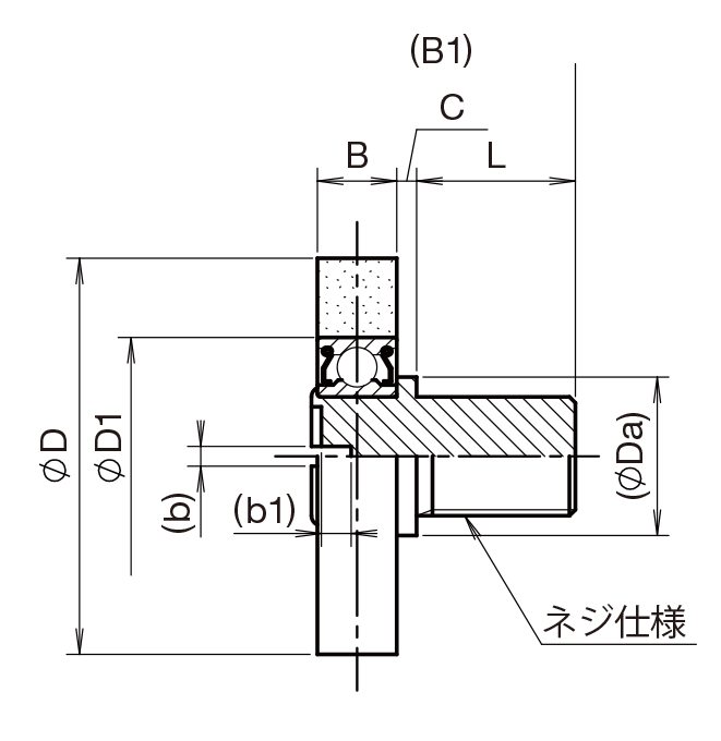 | D | D1 | B | B1 | C | L | b | b1 | Da | Screw specification |